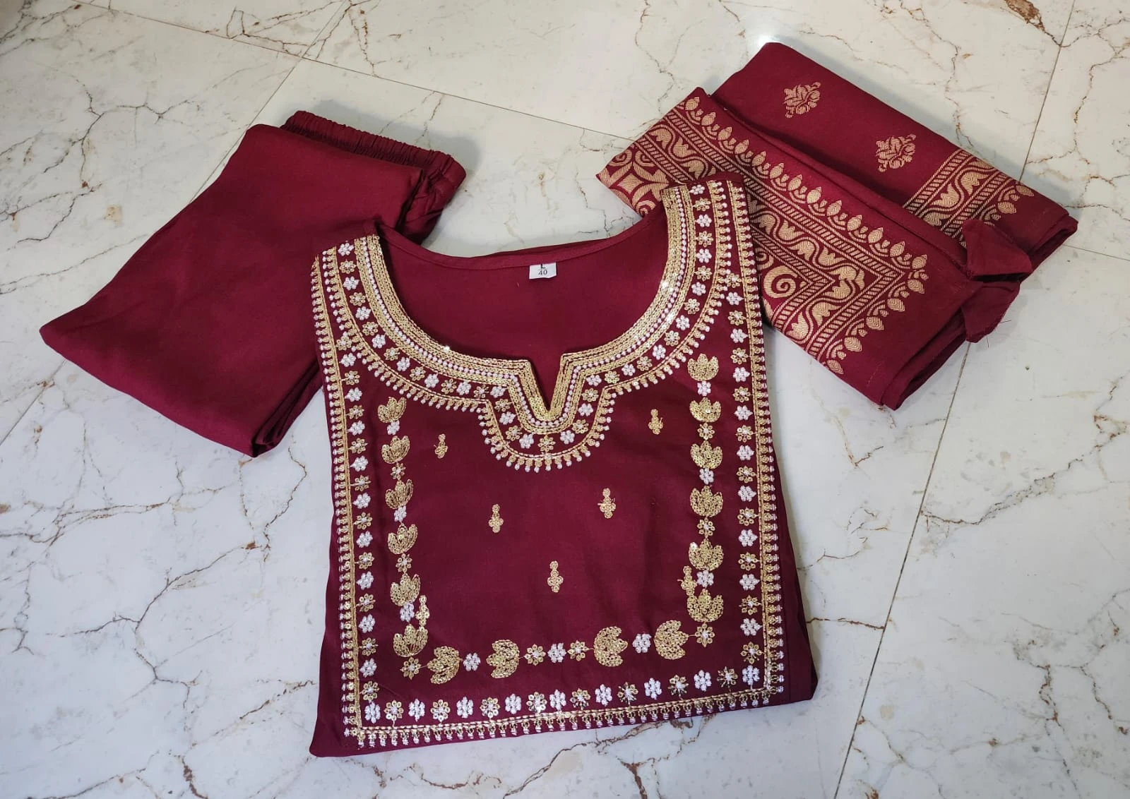Elegant Gajji Silk Kurti – Traditional Indian Tunic with Mirror Work