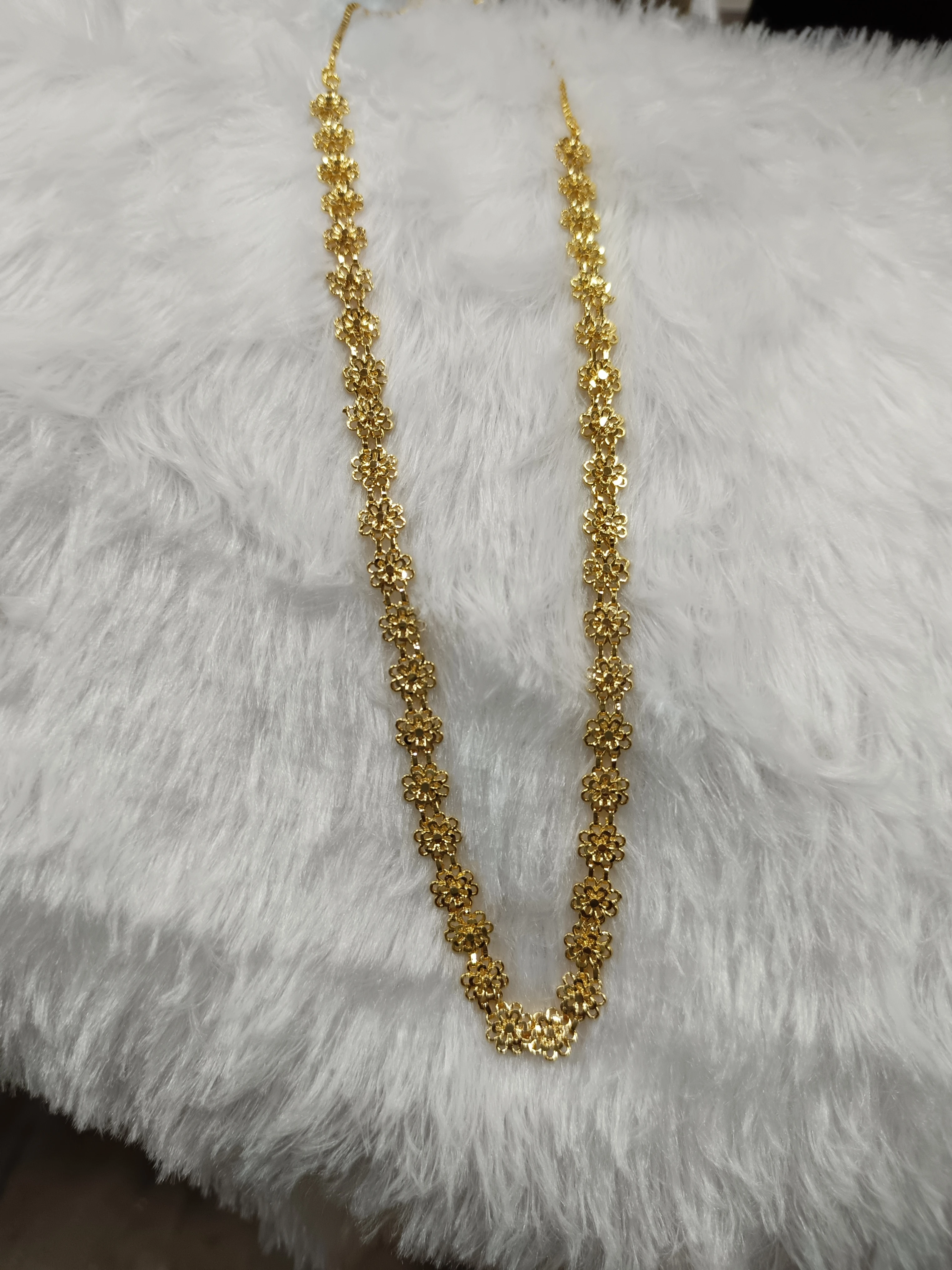Enhance your ethnic style with this 24-inch Bakul Haar, crafted from copper with a delicate micro-polish finish. This traditional Maharashtrian necklace features elegant floral beads, adding a subtle shine and timeless charm to your outfit. Perfect for weddings, festivals, or special occasions. Lightweight, durable, and designed to complement sarees and ethnic wear beautifully.