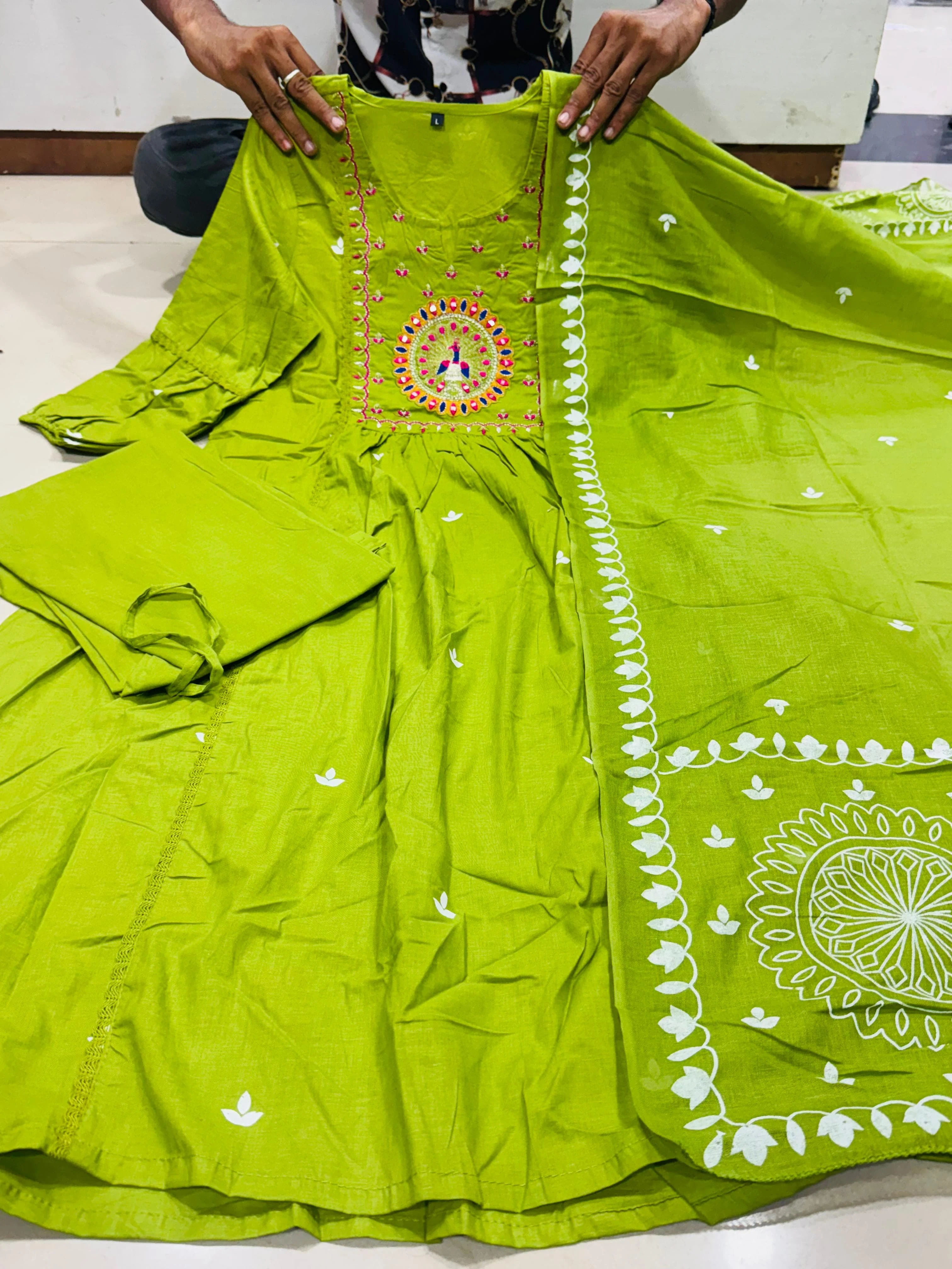 Cotton Kurti – Green | Elegant Neck Embroidery | Original Handwork Design