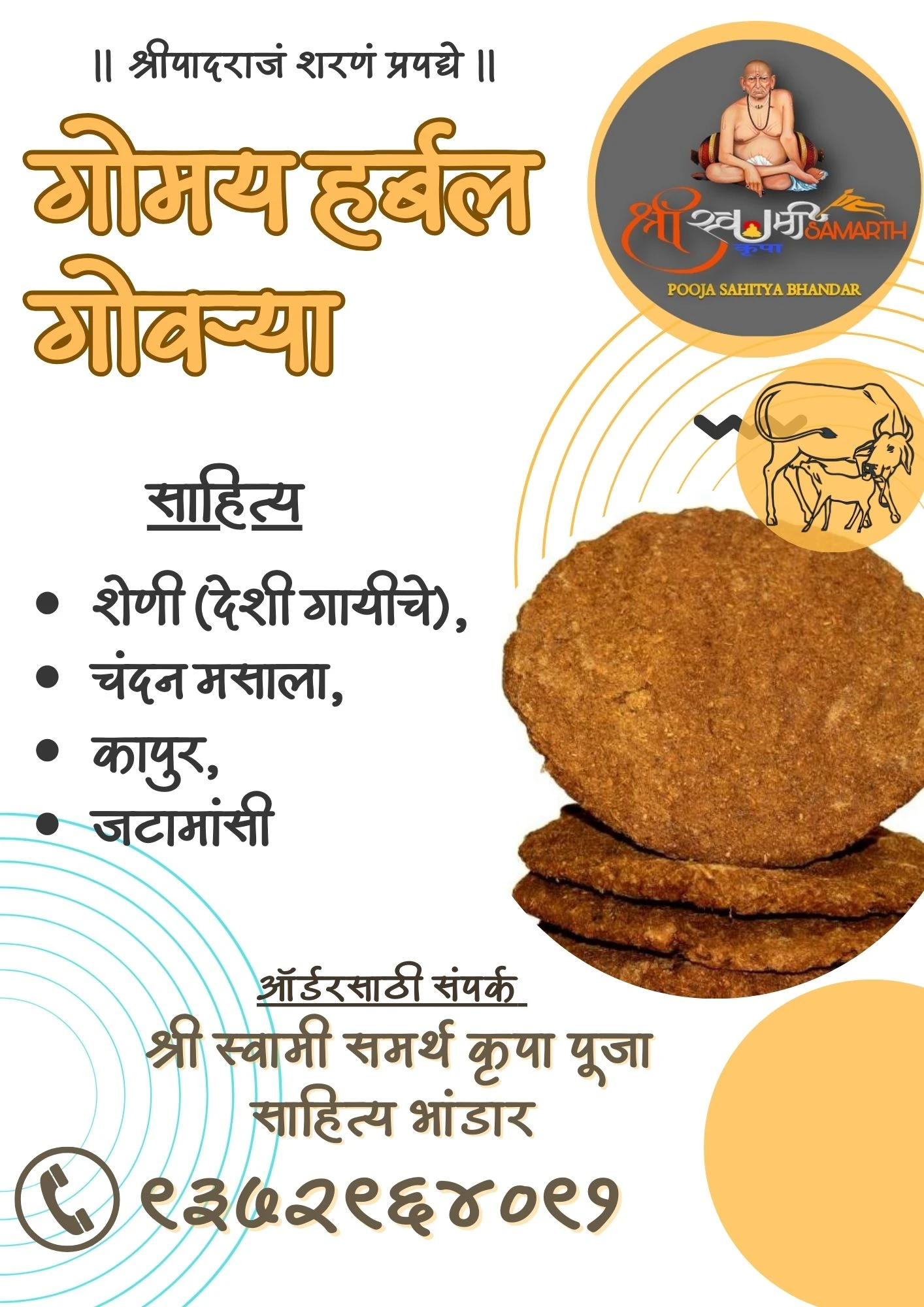Experience the purity of tradition with Herbal Cow Dung Cakes, prepared from desi cow dung blended with natural herbs. These eco-friendly cakes are perfect for pooja rituals, havan, homa, and spiritual ceremonies. When burnt, they release a soothing, herbal aroma that purifies the environment, removes negativity, and creates a divine atmosphere.