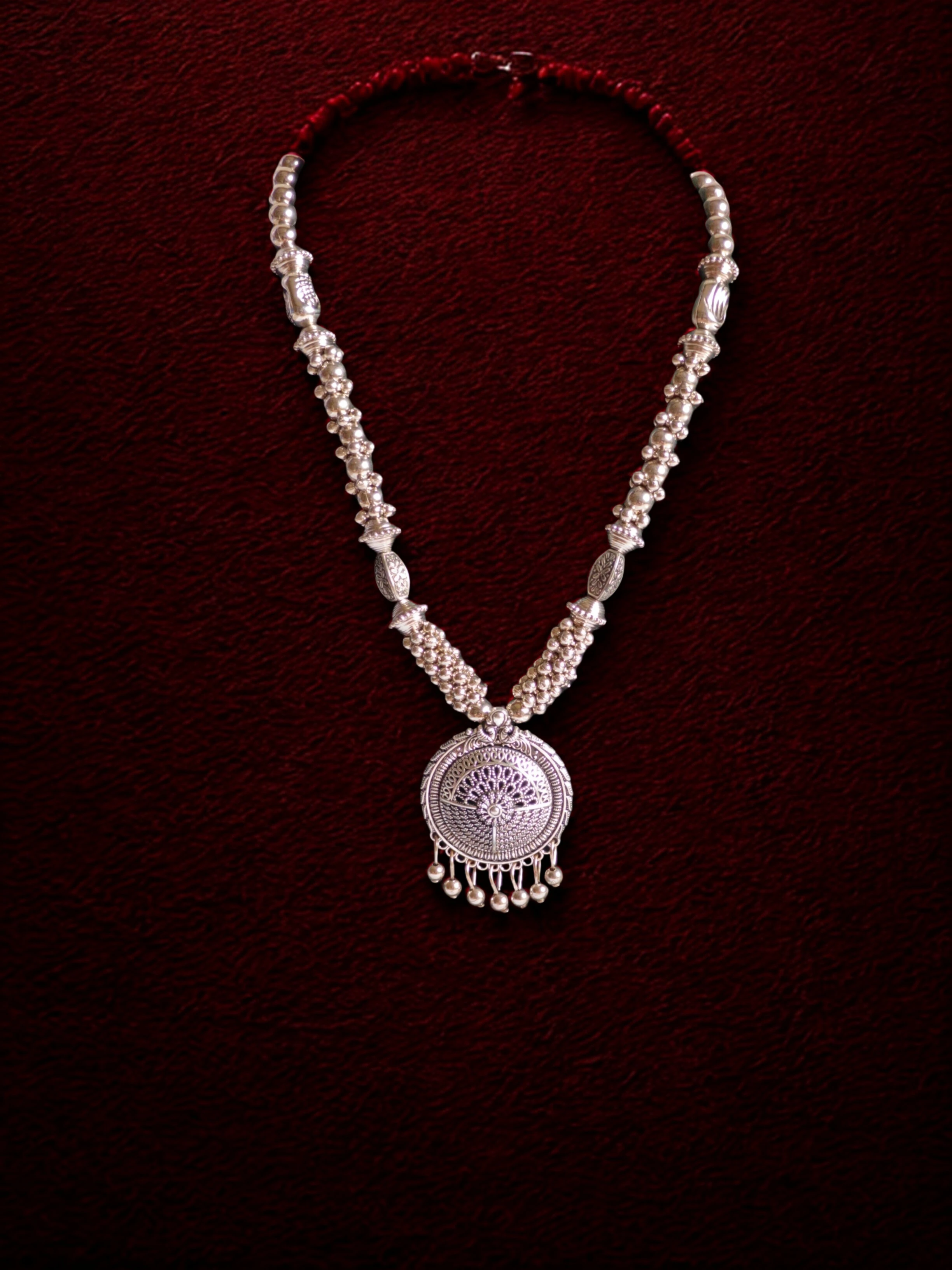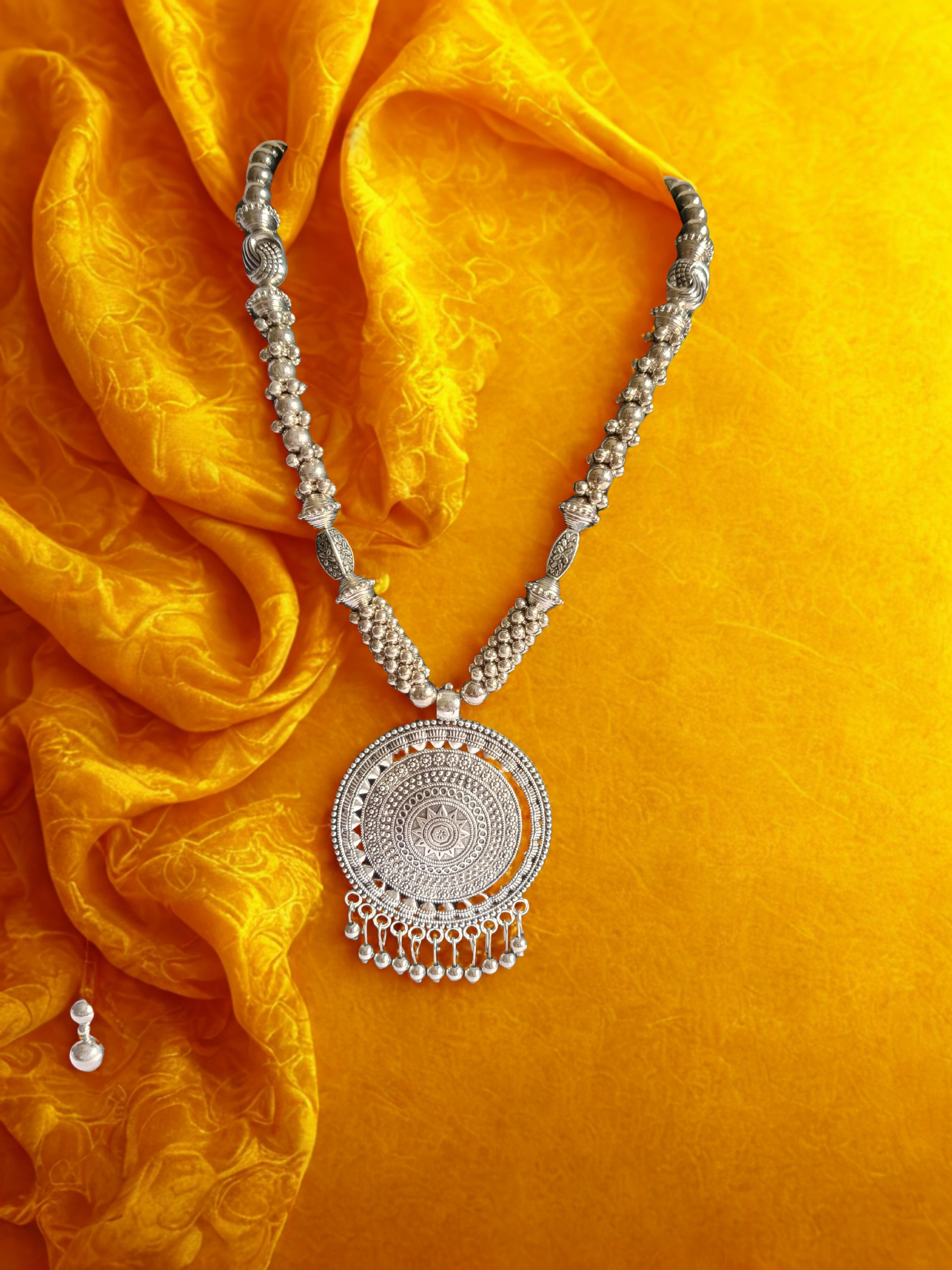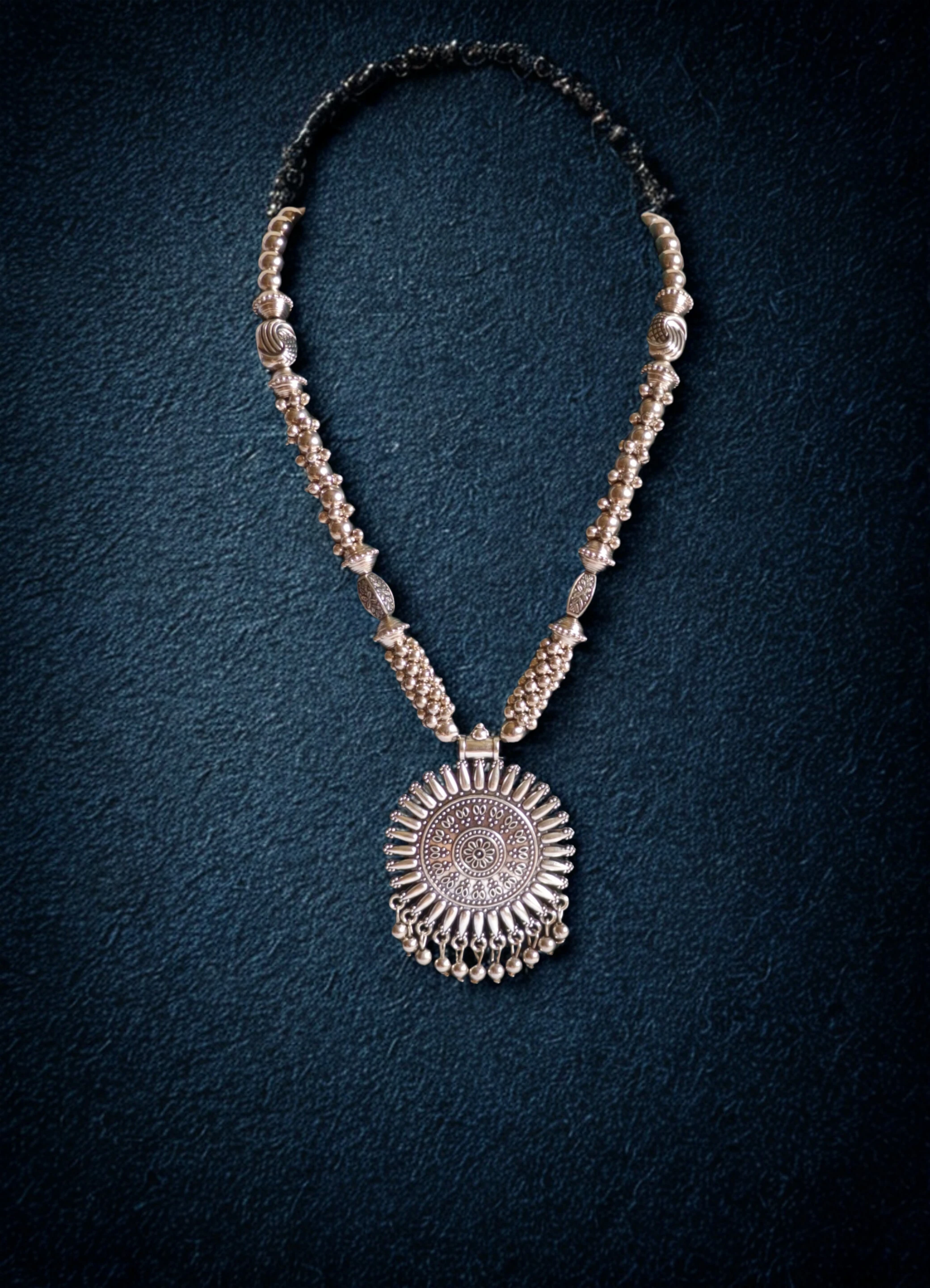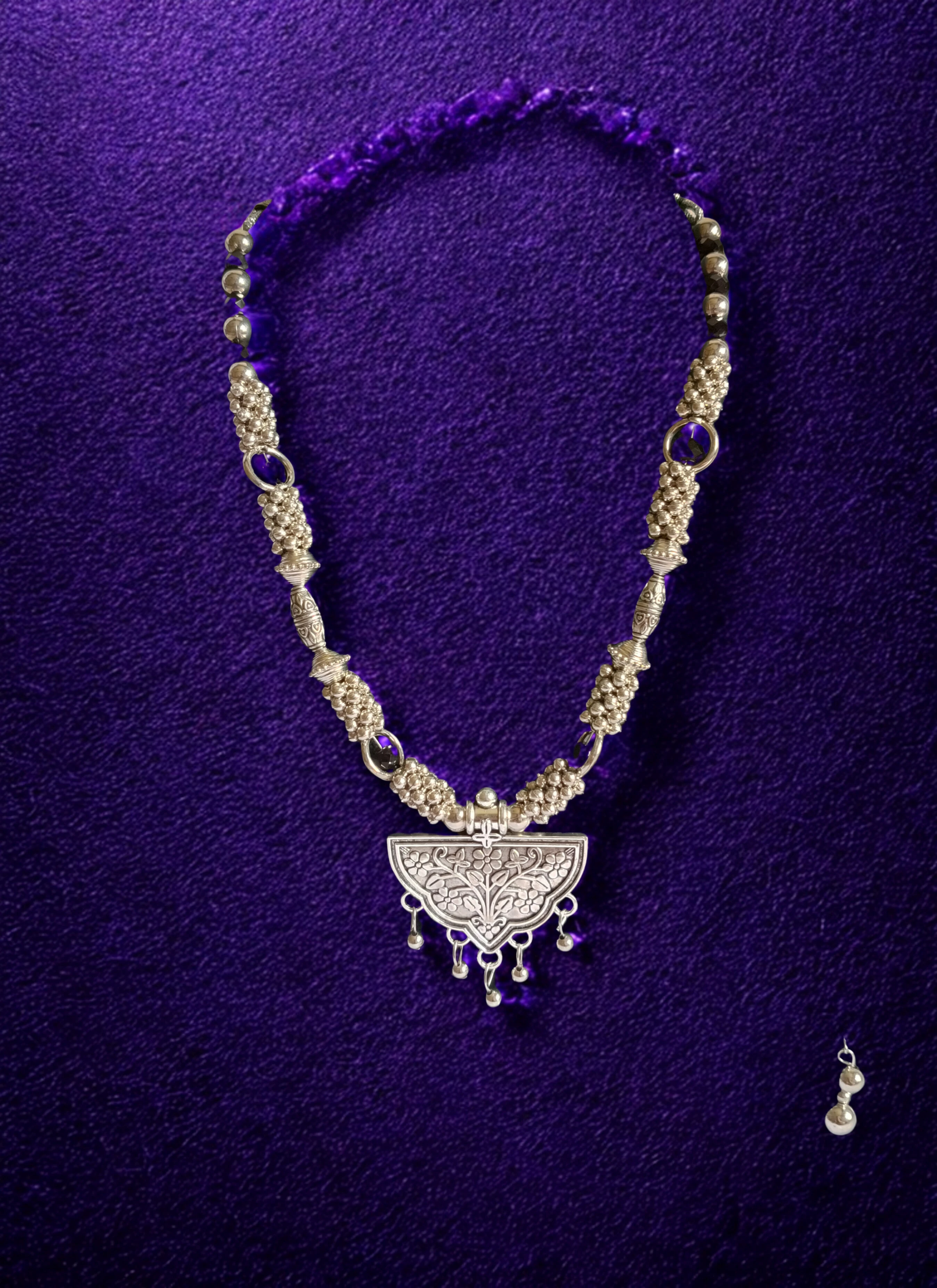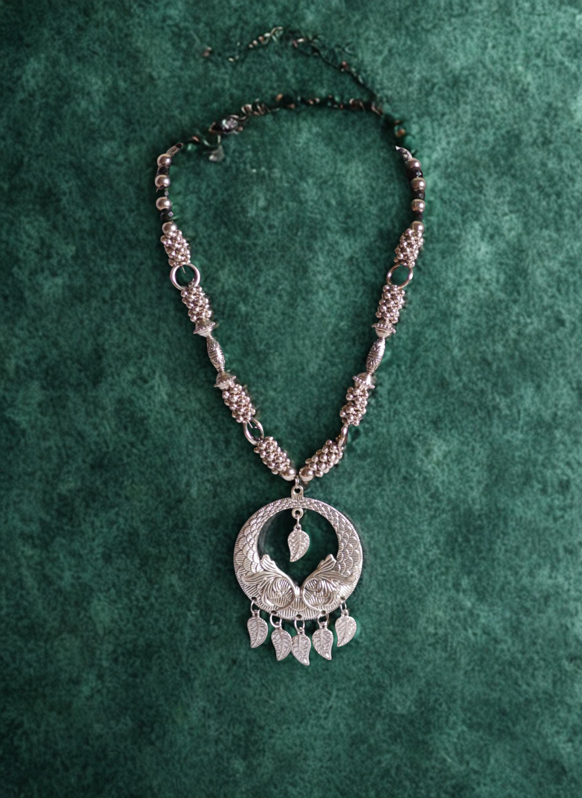 Elegant Oxidised Necklace Set for Women. Add a touch of timeless charm to your ethnic or boho look with this stunning oxidised necklace set. Crafted with intricate detailing, this set includes a beautifully designed necklace paired with matching earrings, making it the perfect accessory for festive occasions, weddings, or casual ethnic wear.