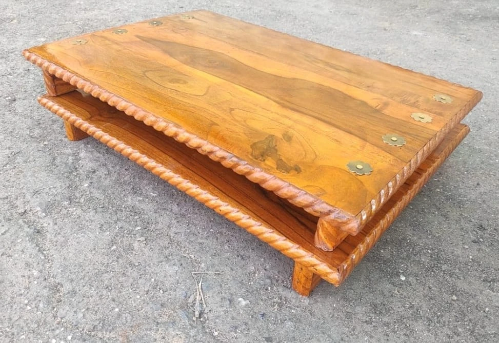 Sagwan Paat is a traditional teak wood platform (chowki) used for placing idols, kalash, diyas, or other sacred items during puja. Crafted from premium sagwan (teak) wood, it is known for its durability, smooth finish, and natural strength. The low height design allows devotees to sit or kneel comfortably while performing rituals.
